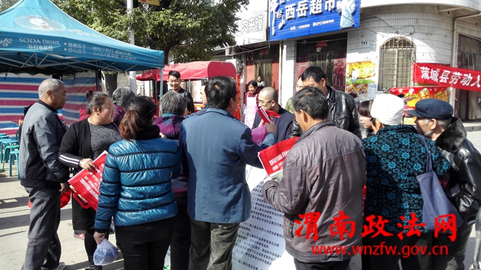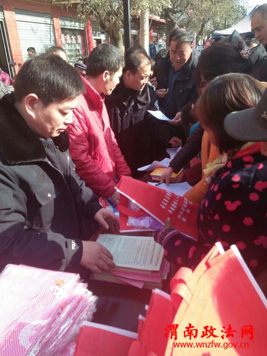 四是选择城区人流量大的车站、广场、农贸市场、社区、饭馆等群众密集的地方,免费向群众发放法治宣传用品,向群众讲解平安建设工作为我们生活带来的变化;同时利用乡镇集会,设立宣传点,布置展板、出动宣传车、免费向群众发放法治宣传用品和资料等,通过群众喜欢的法治宣传用品向赶集群众进行平安建设方面知识宣传。