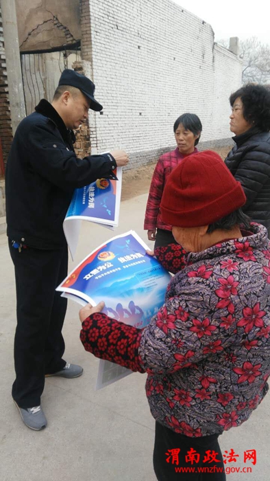 渭南政法网(特约通讯员 马榕蔚)临近年末,为扎实推进平安建设工作,华阴市城关派出所开展形式多样的安全防范宣传活动,提升群众的安全感和满意度。12月23日,华阴市城关派出所深入贯彻落实市局关于在全市开展解决无户口人员登记户口问题的“百日专项行动”。为全力开展好此次专项行动,确保每位无户口人员依法拥有一个常住户口,全面完成我市无户口人员登记户口工作。我所民警结合平安建设工作的开展,一方面就如何防盗、防火等方面,用通俗易懂的语言向辖区村民宣传、讲解安全防范知识,并发放防范知识宣传单和平安建设宣传资料,现场解答村民的提问。期间,各责任区民警通过与群众面对面进行交流和沟通,全面了解群众对派出所民警工作的意见和建议,做好走访记录。同时,民警借助平安建设进村入户走访的机会,逐村逐户发放“无户口人员”宣传单及表格,迅速排查无户人员并认真做好登记,确保此次核查工作不漏户。此外,民警们通过传播速度快的微信朋友圈这个公众平台宣传此次核查行动并纷纷转发,借助微信的力量,告知大家如果身边的亲戚朋友、邻里街坊中有无户口人员,请转告其尽快到派出所进行登记报备,营造良好的舆论氛围,收到了良好的成效。