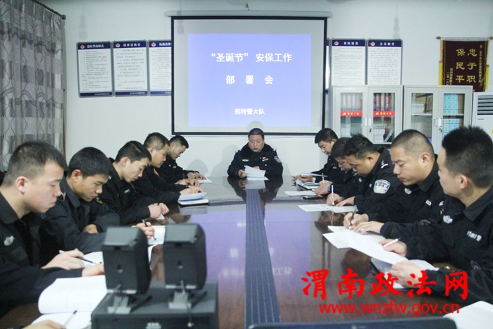 渭南政法网(特约通讯员郎军杰 惠台华)为了维护富平县圣诞节期间社会治安稳定工作,预防和处置各类事件的发生。2016年12月23日,富平县公安局巡特警大队召开圣诞节安保工作部署会。