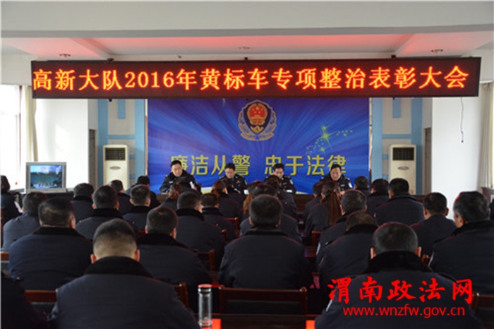 渭南政法网(特约通讯员 吴晓锐)12月29日,高新大队召开黄标车专项整治表彰大会暨2017黄标车专项整治部署会,会议由负责人王晓文主持,大队全体民警参加此次会议,渭南市公安局高新分局政委钞凤奎、副局长王伟峰应邀参加此次会议。