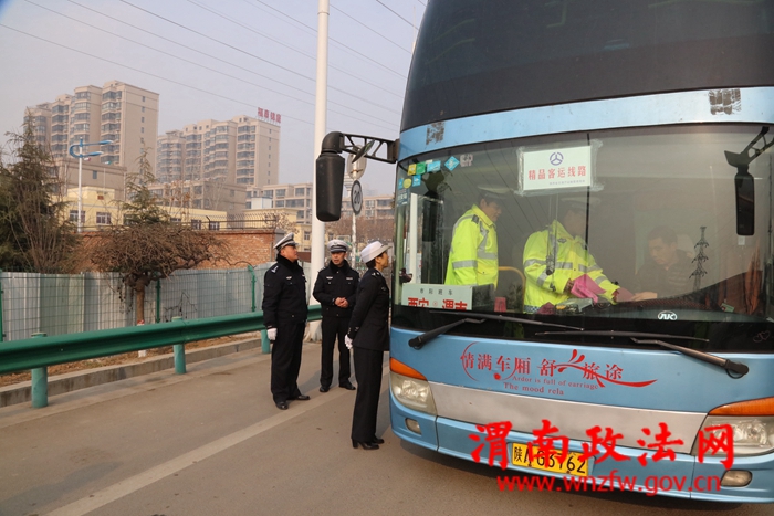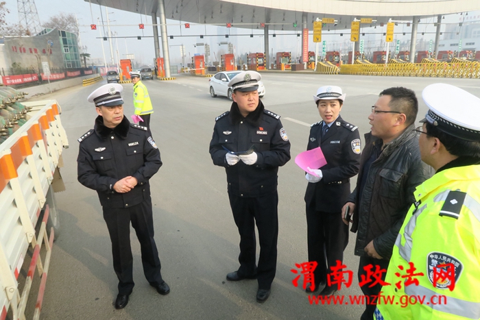 渭南政法网(特约通讯员 雷晓燕)12月30日,陕西省渭南市公安局交警支队高交大队的民警正在对进入高速路的车辆进行安全检查。