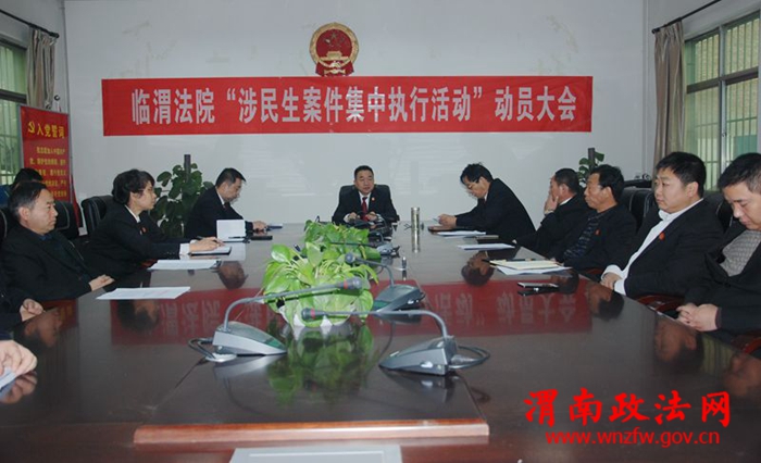渭南政法网(特约通讯员 刘娟洁 马妍)为了认真贯彻上级法院《关于在近期开展涉民生案件集中执行行动的通知》、严厉打击拒不履行法律义务做“老赖”。1月4日,临渭法院召开涉民生案件集中执行专项活动动员大会,安排部署涉民生案件集中执行专项活动,强化对十类涉民生执行案件的执行力度,确保群众能安心过年。会议由执行局副局长耿伟主持。