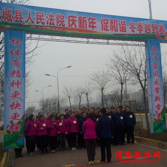 渭南政法网(特约通讯员 杨忠)为了有效缓解法官工作压力,提高干警的健康意识,积极响应全民健身的国家战略,倡导绿色、文明、健康、和谐、积极向上的生活方式。1月5日上午10时,澄城县人民法院“庆新年 促和谐”冬季越野赛在澄城新区晖福街开赛,来自该院21个庭室部门的60余名法官干警参加了比赛。本次比赛分设男女2个组别,男子组为6000米,女子组4000米。