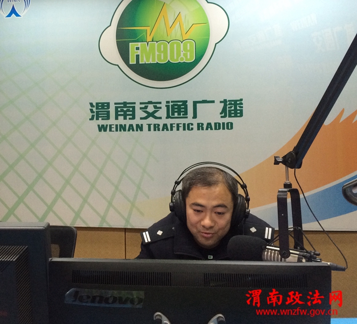 渭南政法网(特约通讯员 王栋炜)1月4日11时,临渭保丰交警中队中队长孙向军受渭南交通广播电台邀请,带领中队民警王栋炜来到FM909广播电台做为嘉宾,对广大市民关心的雾霾天气渭南城区限号限行,滨河大道、人和公园、老城街区观灯展驾车市民朋友在道路两侧如何有序单排安全停放车辆问题进行一一解答,形成互动交流的氛围,展现亲民爱民为民服务,树立临渭交警的良好形象!
