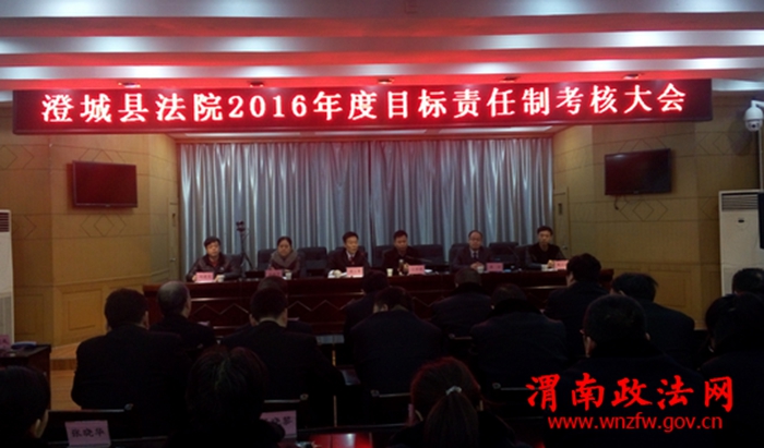 渭南政法网(特约通讯员 杨忠)1月6日,渭南市中级人民法院第二考核组一行5人在副院长、考察组组长吕升学的带领下,对澄城法院2016年度目标任务完成情况及拟立功受市中院表彰的先进集体、先进个人进行全面考核考察。并召开澄城法院2016年目标责任制考核测评大会,澄城法院党组书记、代院长周三军主持会议,该院领导班子成员及全院法官干警参加了考核测评大会。