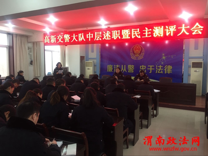 渭南政法网(特约通讯员 李诗龙)2017年元月6日上午9时高新交警大队在3楼会议室召开2016年度中层领导述职暨民主测评大会。会议由大队负责人王晓文主持,大队全体民警参加了会议。