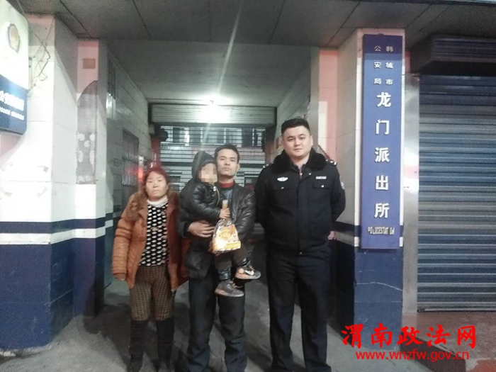 功夫不负有心人,晚17时50分左右,一中年男子来到派出所告诉民警说:他听到熟人告诉他,自己走丢的孩子在龙门派出所,现在来认领。经过民警核实身份,确定其是小男孩的父亲,见到孩子,父亲对民警连声道谢“今天多亏你们了”。
