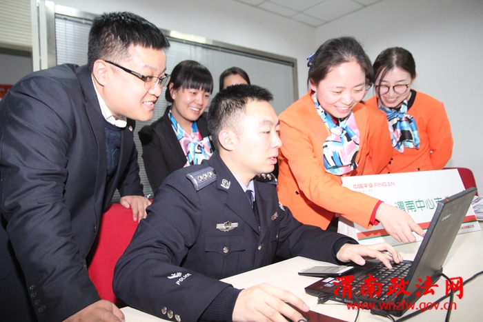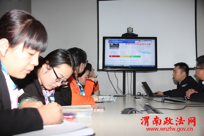 2017年元月11日,陕西省渭南市公安局交警支队临渭大队民警来到中国平安保险公司渭南分公司,为企业员工讲解互联网交通违法处理业务的流程。