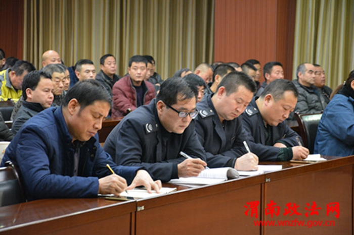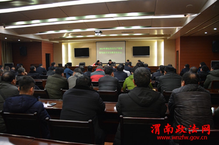 渭南政法网(特约通讯员 吴晓锐)2017年春运从1月13日开始至2月21日结束,共计40天。为深入贯彻落实公安部“12.22”全国公安机关视频会议精神,落实2017年春运电视电话会议精神,全力保障2017年春运期间辖区道路运输安全、畅通,为人民群众欢度新春佳节创造良好的道路交通环境,1月11日晚上7时,高新大队在渭南市汽车运输集团有限责任公司开展春运安全生产管理暨驾驶员安全教育培训会,会议由渭运集团安技处长李成主持,副大队长刘全红、交通秩序管理中队长姬治国、事故预防处理中队长徐岗峰、高交西潼中队事故处理中队长李峰及部分新闻媒体参加此次会议。
