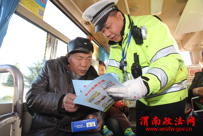 渭南政法网(临渭交警讯)1月13日是2017年的春运第一天,陕西省渭南市公安局交警支队临渭大队提早准备,将检验合格的204辆客车“春运证”,和224个复合客运车辆驾驶人准驾资格的“春运准驾证”发放到了客运企业及驾驶人手中,并且通过站内检查、站外巡查、定点登记车辆和人员运营状况等方式,严防超员、超载、超速、疲劳驾驶等交通违法行为。同时,结合全市春运工作总体安排部署,重点加强春运道路上的最后十公里安全防范,根据农村道路地缘特点,发挥交通安全劝导站和交通安全劝导员的作用,聘请当地有文化、负责任、路况熟的村干部做交通安全劝导员,与民警积极配合,进行交通安全劝导活动,向过往车辆及村民宣传交通安全知识。
