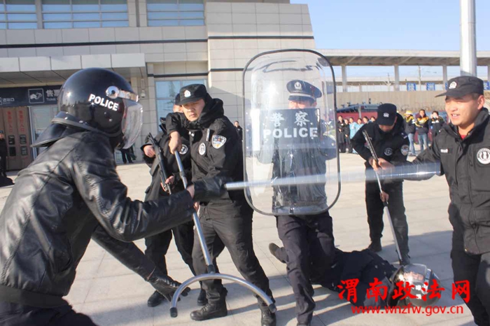 渭南政法网(特约通讯员 刘海滨 李晓艳)春节临近,省“两会”即将召开,为了预防和处置暴恐突发事件,确保社会稳定节日安全。1月12日,大荔县反恐办组织公安特警、武警、消防和高铁公安在高铁大荔站联合举行了处置暴恐袭击、突发火灾实战演练。通过这次演练,增强了公安特警、武警消防官兵、高铁公安、铁路职工以及广大旅客的反恐防恐意识,多方配合联合作战的能力,对预防和处置暴恐袭击、突发火灾起到积极作用,也为“平安春运”和“两会”安全保卫奠定了坚实的基础。