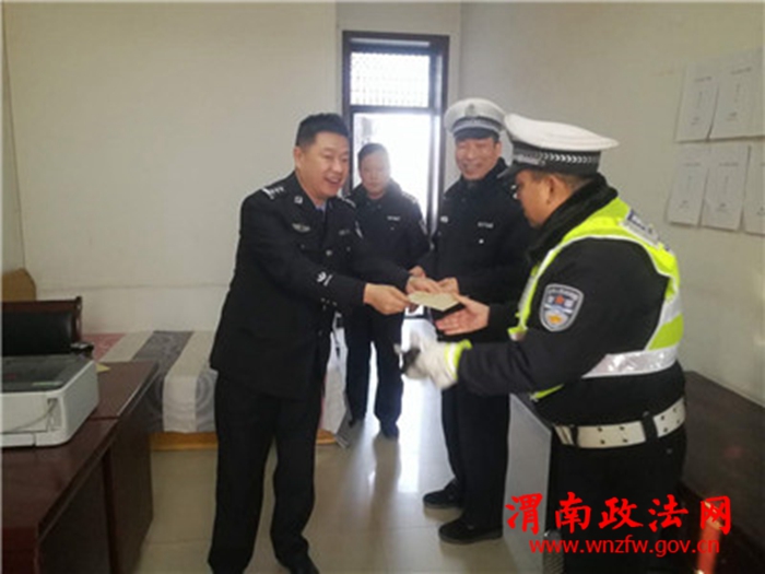 渭南政法网(高新交警讯)1月19日上午,市交警支队副政委王平带领监察督查处副处长白红艳慰问了大队基层中队生活困难协警李哲、吴兴良,并送上慰问金。