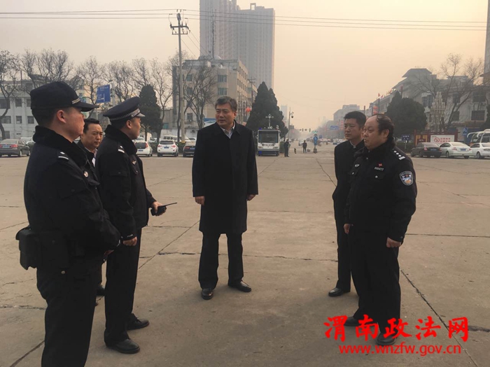 渭南政法网(特约通讯员 陈勇超)春节将至,为确保节日和“一带一路”国际灯光艺术节期间的安全,让来韩的外地游客和广大人民群众感受到黄河之滨名珠都市异彩缤纷的魅力,过一个安定祥和的春节,1月24日下午,市委常委、政法委书记刘革由副书记吉武军、综治办主任柳剑、市公安局副局长贾建军等部门负责人陪同,深入市火车站、长途汽车站、巍山路加油站、新城办综治维稳中心、古城三庙步行街,就我市社会治安防控工作以及节日安保工作落实情况进行了调研检查。