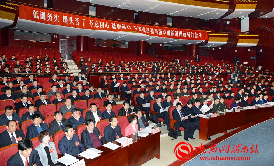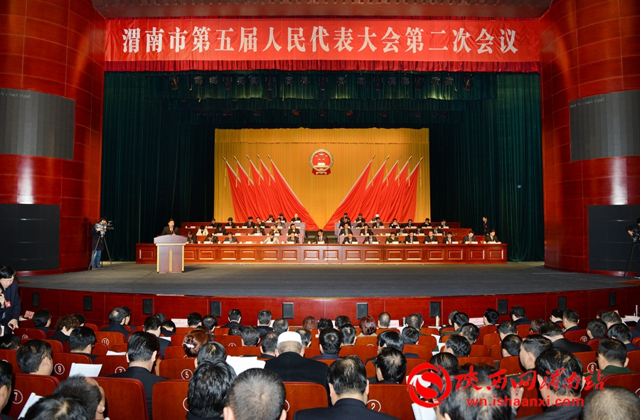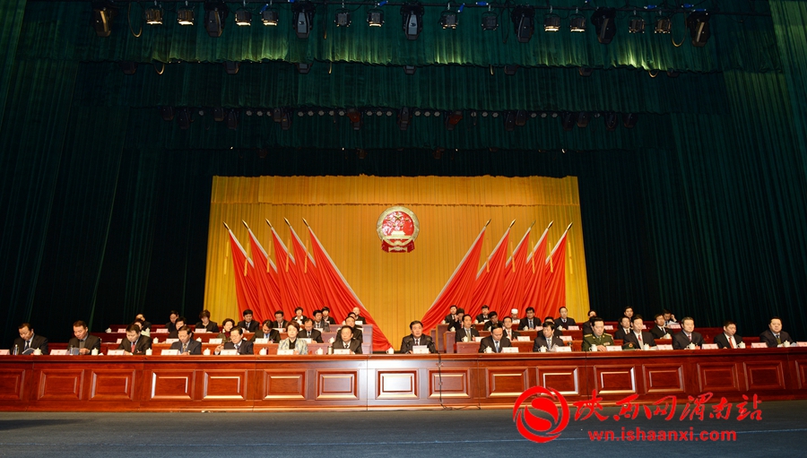 2月8日上午,渭南市五届人大二次会议第二次全体会议在渭南大剧院举行。记者 许艾学 王梦 摄