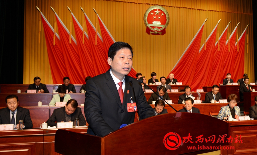 渭南市中级人民法院院长李永强代表市中级人民法院作工作报告。记者 许艾学 王梦摄