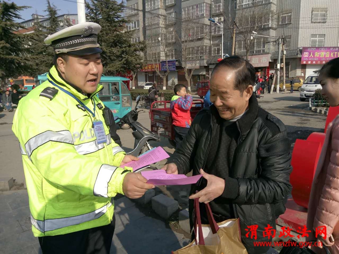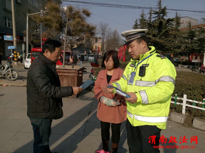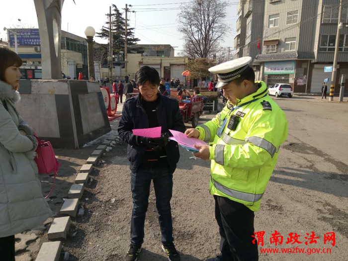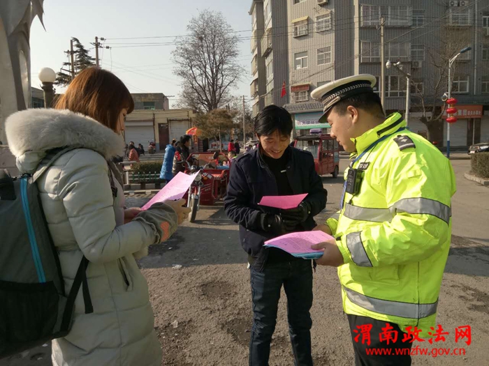 渭南政法网(特约通讯员 夏阳)2017年2月11日,潼关交警大队潼洛中队为进一步做好春运、元宵节期间的道路交通安全管理工作,更进一步提高广大交通参与者交通安全意识,全力预防辖区重特大道路交通事故的发生,确保辖区道路交通安全、有序、畅通,营造浓厚宣传氛围。