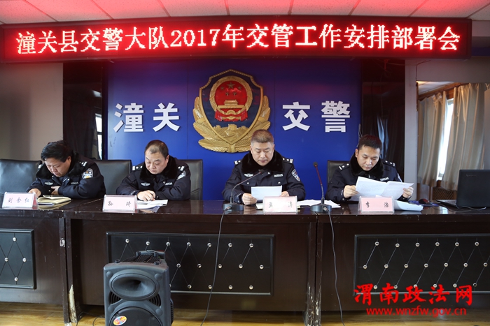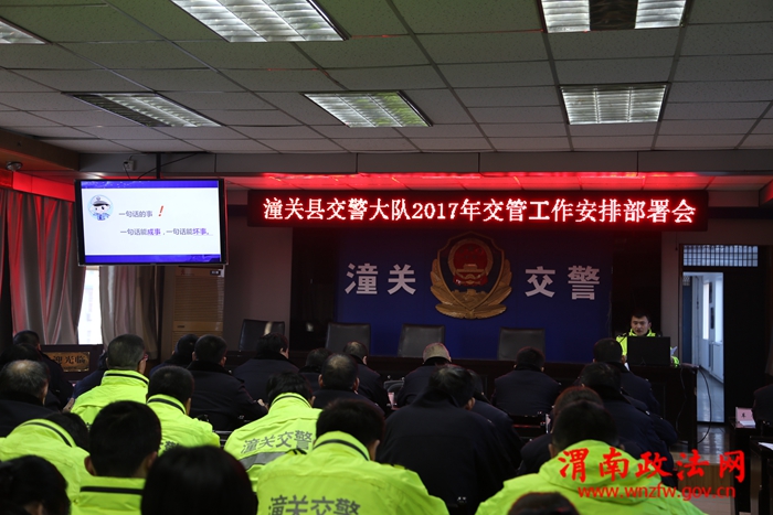 渭南政法网(潼关交警讯)为切实加强2017年道路交通管理工作,2月13早,潼关县交警大队2017年交管工作安排部署会议在大队四楼会议室举行。大队领导班子成员及80余名民警参加会议,会议由副大队长孙琦主持。