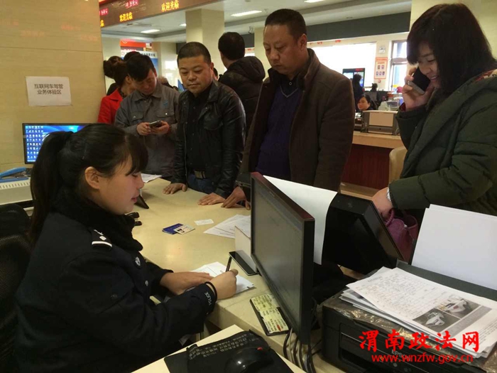 渭南政法网(特约通讯员 吴学海)2月15日,潼关车管所服务窗口热情服务。车管所全体民警警容严整,坚守岗位,力争让每一位来办理业务的群众高兴而来、满意而归。