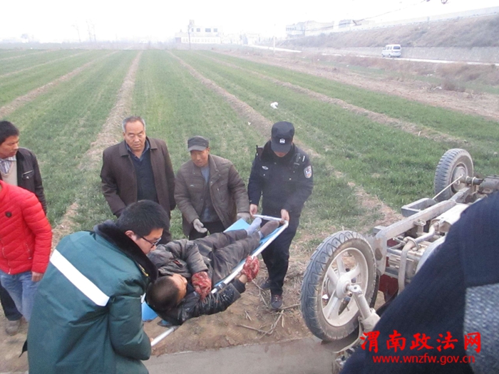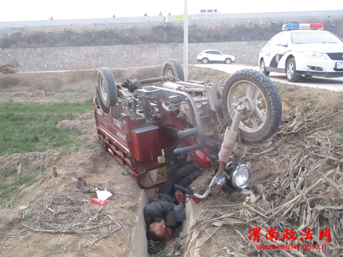 渭南政法网(特约通讯员 张剑)2月14日17时许,富平县公安局张桥派出所民警在巡逻途中经张桥镇铁路高架桥时,发现在大桥东侧的灌溉水渠里有一辆红色的三轮摩托车侧翻在沟内,民警立即停车查看。