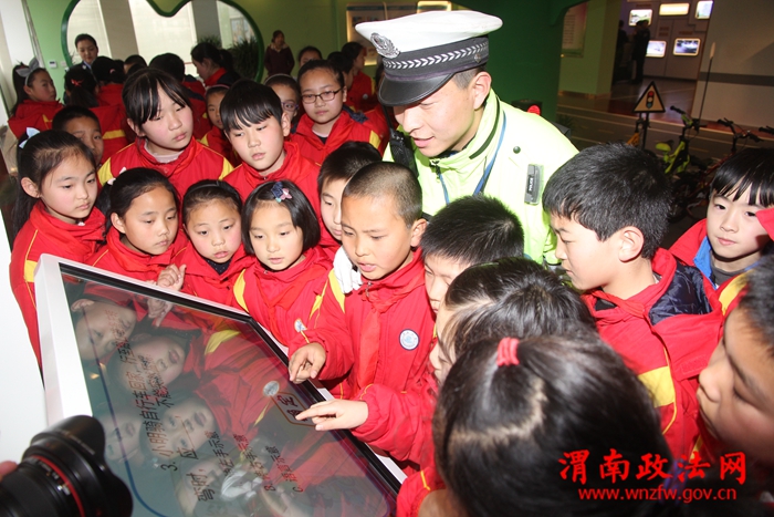 2月15日,临渭交警大队民警带领70余名临渭区育红小学的学生,来到渭南市公安局交警支队交通安全宣传教育基地,通过识别交通标志牌、正确通行斑马线、交通安全知识答题、模拟交通体验等形式,让同学们真实体验了道路通行规则。