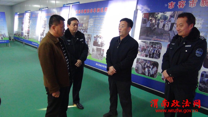 县城管局局长张向阳首先向张锋县长汇报了县城管局自成立以来城市管理执法工作情况,并带领张县长参观了县城管局2016年度工作成效及2017年工作计划展板。在认真听取汇报的过程中,张县长结合城区市容环境的新面貌、新秩序,对县城管局的执法工作给予了充分的肯定,同时提出了几点中肯的建议:一是加强部门联动。城市管理工作是一项复杂的系统工程,只靠城管一个部门是很难做好城市管理工作的,为此,一定要加强和住建、市场监管、食药监、交警等部门的衔接,开展联合执法,进行综合治理;二是扩大社会宣传面,营造良好舆论氛围。比如,可以和教育系统合作,在学校中开展城市管理方面的法律法规、政策宣传;在校园周边,要加强市容市貌治理工作,既是为进出师生提供便利、安全的交通环境,又可以通过我们的治理工作,让师生们切身感受到城市管理工作的重要性,进而提升师生们自觉维护市容市貌的意识,带动和增强周边群众维护城市容貌的思想意识觉悟。