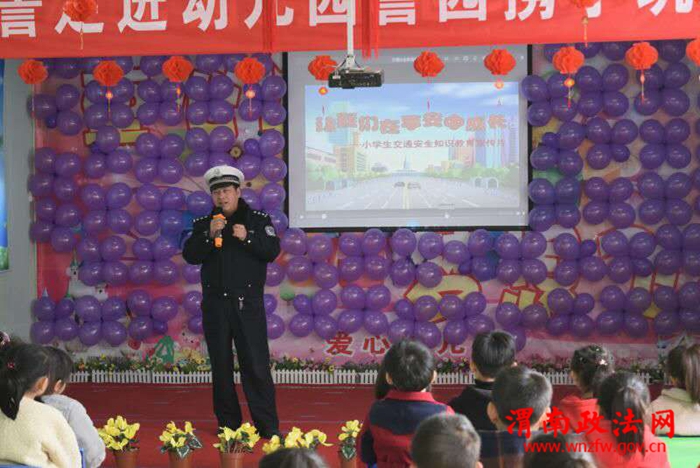 渭南政法网(特约通讯员 刘军峰) 2017年2月16日,潼关城区交警中队、县交警大队宣传科民警走进爱心幼儿园,通过寓教于乐的形式为幼儿师生送上了一堂生动的交通安全课。