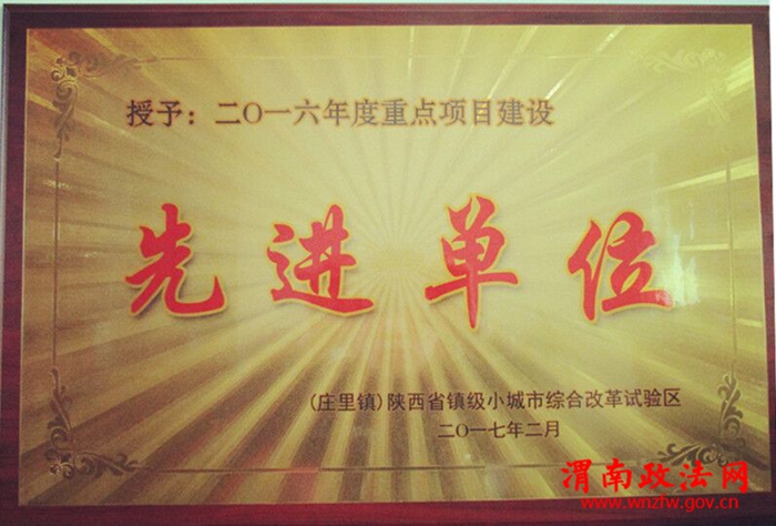 渭南政法网(特约通讯员 张剑)2月15日,在富平县庄里试验区党委、政府组织召开的2016年度全区工作总结表彰大会上,富平县公安局庄里派出所荣获陕西省镇级小城市综合改革试验区2016年度重点项目建设先进单位。