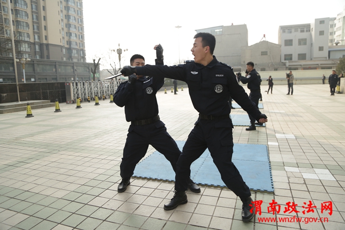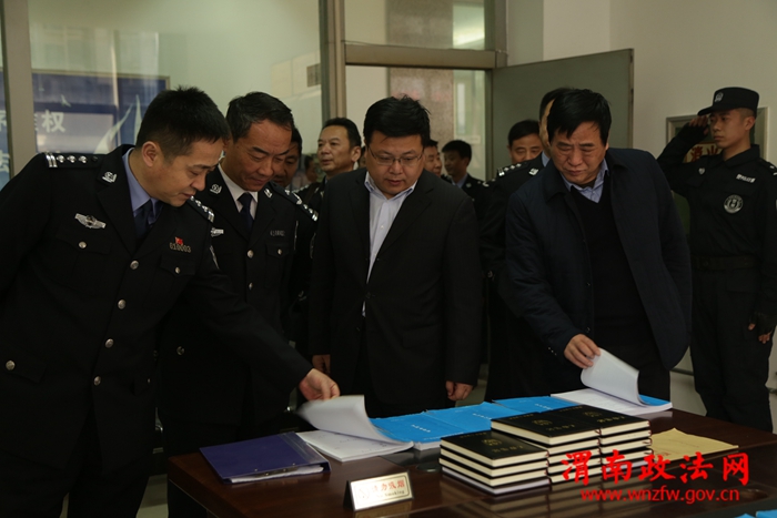 15:00,观摩会在蒲城法院法警大队精神饱满、口号洪亮、动作整齐划一的技能汇报表演中拉开帷幕。随后,在王玉琦院长的陪同下与会人员查看了安检大厅、警队办公室、值班室、警械库、审判执行警务指挥中心等场所,查阅了警务静态资料。与会人员被蒲城法院法警大队的科学化、规范化的警务台帐登记和创新管理制度所折服,纷纷用手机拍照取经。