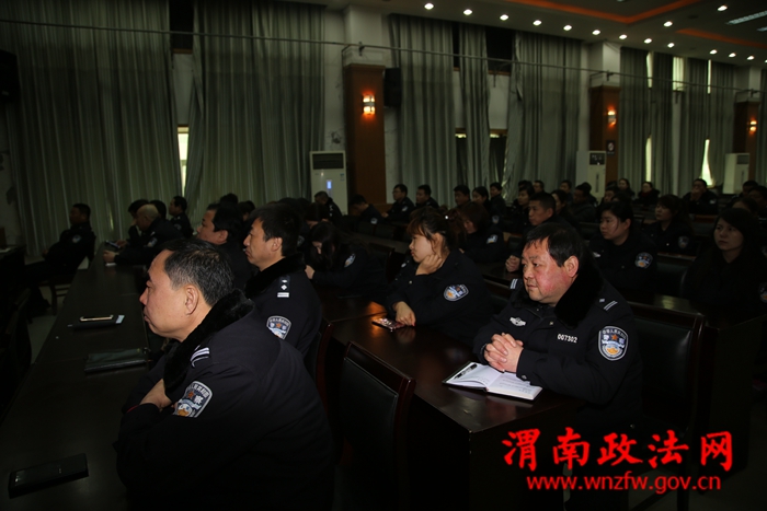 渭南政法网(特约通讯员胡伟峰 何冬冬)2017年2月20日上午,富平县公安局交警大队组织全体民警(正常路面执勤及窗口服务人员除外)观看教育专题片《打铁还要自身硬》。该专题片由央视倾力打造,共分三篇,分别是:信任不能代替监督》、中篇《严防“灯下黑”》、《以担当诠释忠诚》。该专题片涉及10多个案件,朱明国、金道铭、魏健等10余位严重违纪违法的纪检监察干部现身说法,剖析自己违纪违法行为和思想蜕变过程,发人深省、令人警醒,有很强的警示和教育意义。