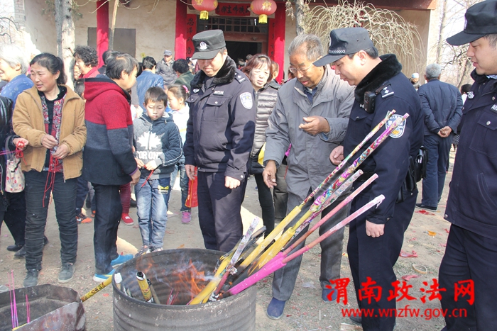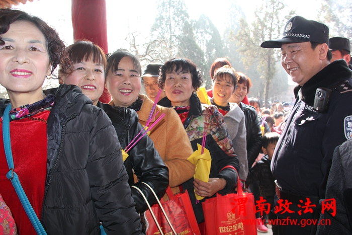 渭南政法网(特约通讯员刘苍锋 )2月19日,我国第二高站立式铁佛庙会在富平县镇级小城市综合改革庄里试验区铁佛寺举行。当日,为了防止拥挤踩踏等意外事件的发生,富平县公安局庄里派出所、交警庄里中队民警坚守一线,加强复杂拥堵路段的疏导和危险路段安全防护以及现场游客的分流工作,同时向游客进行防火、防盗、网络电信诈骗及反对邪教等法律常识宣传,赢得群众称赞,确保了庙会活动的顺利开展。