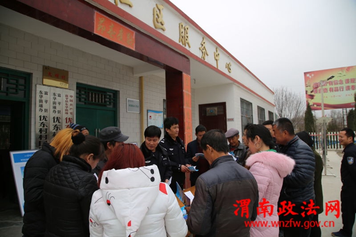 渭南政法网(特约通讯员 胡伟峰 孙巍)2月20日下午,乍暖还寒,寒风凛冽,气温骤隆,富平交警大队法宣、车管有关业务负责同志,迎着寒风,来到辖区华东街道办优东村委会,开展交安宣传工作,将交通警察的温暖送到辖区人民心中。