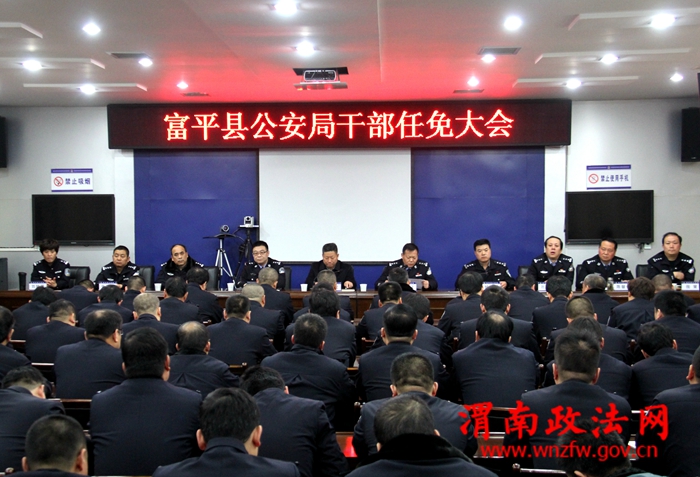 渭南政法网(特约通讯员 张剑)2月20日下午,富平县公安局召开干部任免大会,富平县委常委、政法委书记杜银虎、公安局党委领导班子,各所队室负责人以及新提拔任职、调整的领导干部100余人参加了大会,会议由政委李跃主持。