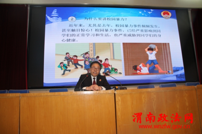 针对当前青少年犯罪案件逐年上升、校园暴力事件频频发生的现状,检察官结合近年来发生的典型案例,运用通俗易懂的语言,为6000余名师生作了一次题为《远离校园暴力,构建和谐校园》的法制报告会。在报告会上,检察官紧扣学生关心的热点和焦点问题,以案释法,深入浅出地剖析了校园暴力的现状、表现形式、发生原因,向学生讲解了校园暴力的严重后果以及所触犯的常见罪名,向学生传授了如何应对校园暴力、如何加强自我保护等方面的知识和技巧,要求学生选对自己的角色,不做个性粗暴、喜欢用拳头解决问题的施暴者,不做胆小懦弱的受害者,巧妙做一个心地善良的保护者,最终远离校园暴力,健康快乐成长。