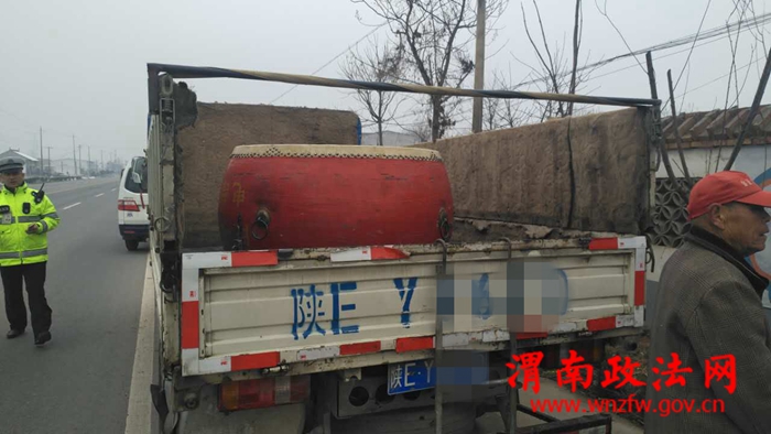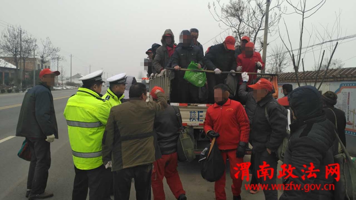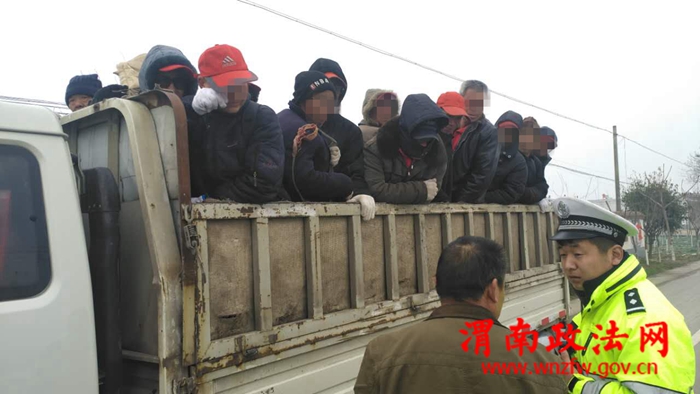 2月22日早9时许,临渭交警大队小什中队民警在108国道巡逻时发现一辆轻型货车后车厢载人,示意该车停下接受检查。