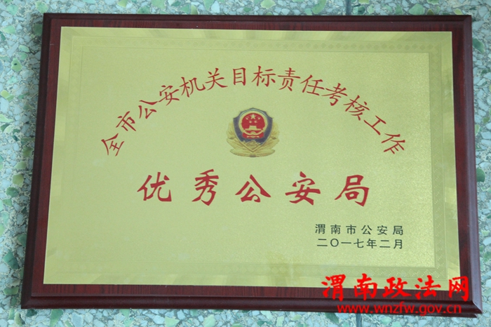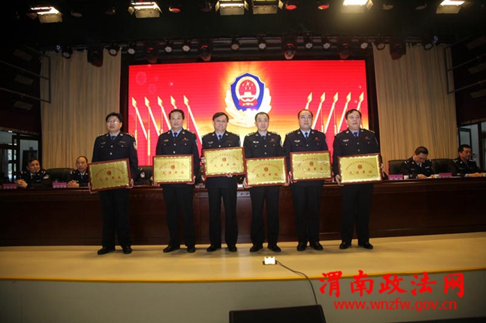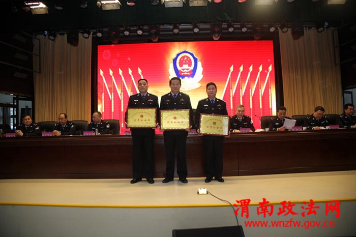 渭南政法网(临渭公安讯)2月22日下午,渭南市公安局召开2017年全市公安工作会议,大会隆重表彰了2016年度全市公安系统优秀单位和先进个人。临渭分局被评为 “全市优秀公安局”和“全市公安重点工作考核先进单位”,巡特警大队、解放路派出所被评为全市优秀公安基层单位、向阳街派出所所长龙延被评为全市优秀科所队长、权钰栋等六名民警被评为全市优秀民警。会上还传达了《省公安厅表彰2016年度先进集体和先进个人的决定》的文件精神,我局东风街派出所被评为全省优秀公安基层单位、官道所所长樊晓聪被评为全省公安机关优秀科所队长,解放路派出所民警郝磊被评为全省公安机关优秀民警。这些荣誉的取得为我局在新的一年继承发展、争先创优、凝聚力量、鼓舞了士气,为公安工作的跨越发展打下了坚实基础。