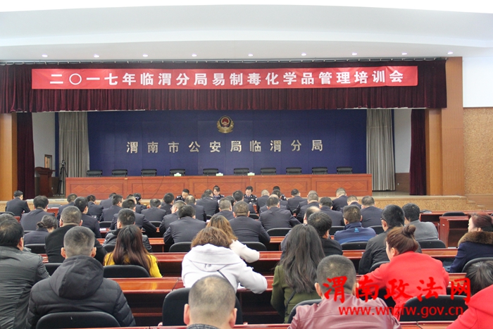 渭南政法网(临渭公安讯)为进一步规范临渭区易制毒企业化学品管理程序和提高临渭分局禁毒案件办理质量,3月1日上午,在临渭分局二楼报告大厅召开2017年临渭分局易制毒化学品管理培训会。临渭分局张君萍副政委、各派出所所长、主管禁毒工作副所长及禁毒联络员、相关科室大队领导、临渭区易制毒化学品企业法人、管理员100余人参加了会议。