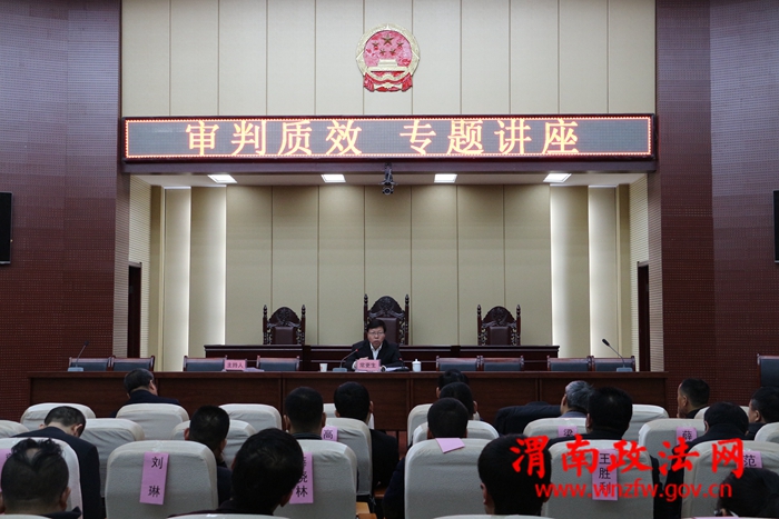 邀请专家,找准短板。韩城法院党组专题分析审判质效态势,院长贾福德指出:审判质效是法院工作的生命线,是执法办案的第一要务,直接影响司法公信力和法官的形象,极易引发群众对司法的不满,对公正的怀疑,涉法涉诉信访案件,根源在审判质效出了问题,必须高度重视审判管理,坚持问题导向,找准影响审判质效的短板指标,采取切实可行的举措,全力提升审判质效,力争在2017年底进入渭南全市法院乃至全省法院第一方阵。为此,2月27日,邀请渭南中院审管办常更生主任来韩就审判质效作专题讲座,常主任对渭南11个基层法院2016年度审判质效进行了评估,精辟分析了韩城法院的优势指标,同时找准了韩城法院审判质效方面存在的六类短板指标:发改率、立案变更率、当庭裁判率、民事案件调撤率、民事便捷程序适用率及四类超审限案件未结指数,指明韩城法院在渭南市基层法院所处位置,并就如何提升审判质效讲了工作要点。