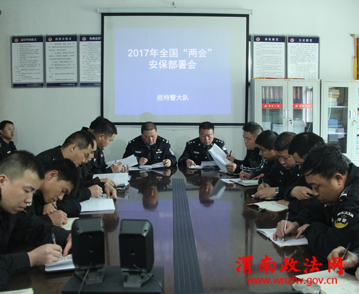 渭南政法网(特约通讯员 郎军杰)2017年2月28日下午,富平县公安局巡特警大队召开全国“两会”安保工作部署会。大队各分管领导,各中队正副中队长参加会议。大队长任军印同志组织大家认真学习了市、县关于全国“两会”安保工作方案,要求安保工作要务必做到