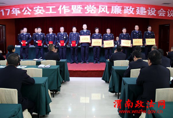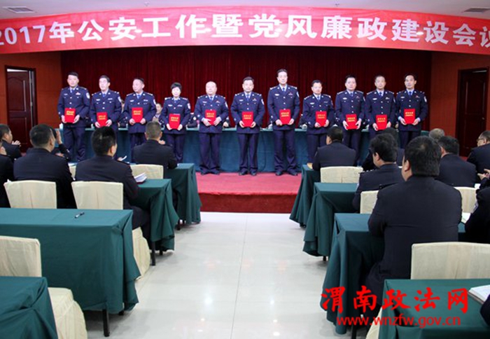 会上,政工监督室主任康西平宣读了县局对2016年度先进集体和先进个人的表彰决定,并对受表彰的单位和个人分别颁发了奖牌和证书。局党委书记、局长何志义作了题为《务实担当、改革创新,以昂扬斗志、稳健步伐,全力推动富平公安实现追赶超越》的重要讲话;纪委书记陈敏锋就2017年党风廉政建设做了详细安排部署。会议期间,何志义局长与各所队室主要领导现场签订了2017年公安机关目标责任考核责任书和党风廉政建设责任书。
