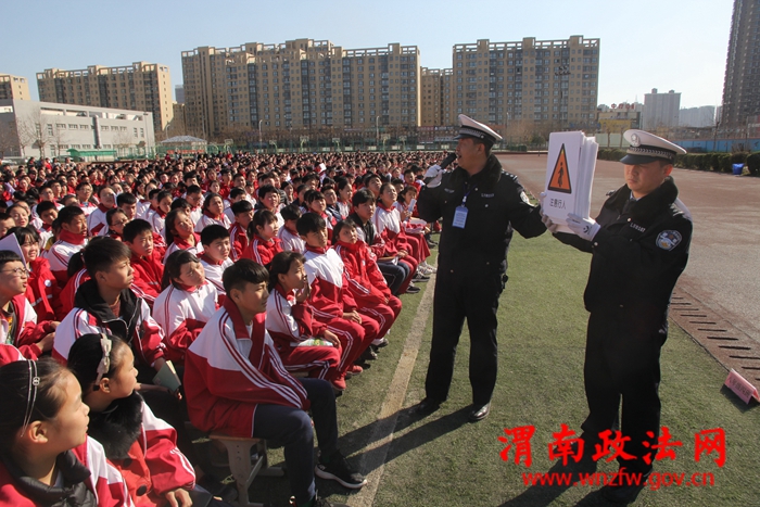 3月1日,临渭交警大队来到辖区实验中学,为全校4000余名学生传颂爱国主义情怀和学习雷锋精神的同时,倡导大家争做文明少年,自觉遵守交规,安全文明出行。