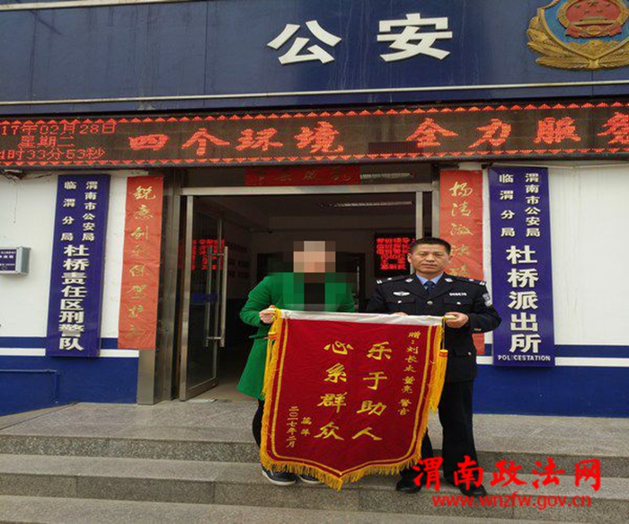 渭南政法网(临渭公安讯)2月28日下午,失主李女士来到临渭分局杜桥派出所值班室,将一面印“心系群众,乐于助人 ”的锦旗亲手交到民警刘长太手里。原来,她之前丢失的一个手提包,环卫工人捡到后交给民警,民警通过网络等方式将手提包物归原主。