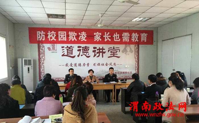 渭南政法网(临渭公安讯)应辖区学生家长的要求,为了杜绝校园欺凌事件的发生,浇灭校园暴力的火苗,3月7日渭南市临渭区站南所联合站南街道办事处在朝阳社区为社区学生家长送上了题为“防校园欺凌