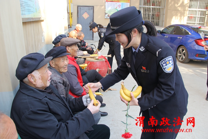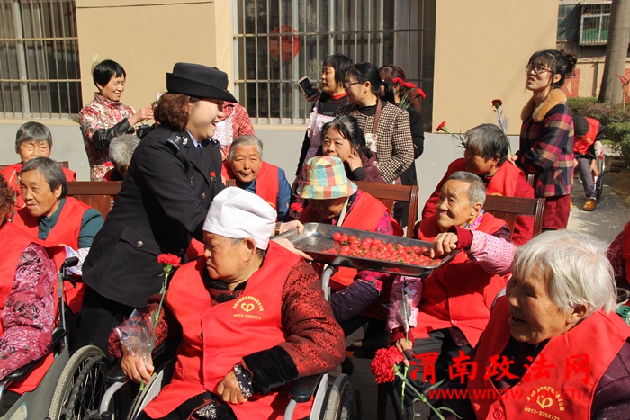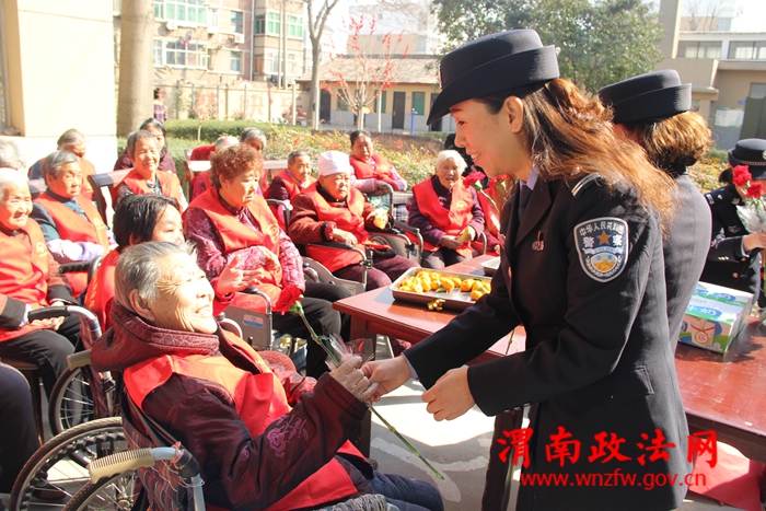 渭南政法网(临渭公安讯)为进一步促进和谐警民关系,增强民警爱民意识、服务意识,临渭分局站南派出所利用“三八”国际妇女节组织开展了“警花鲜花来敬老”的活动。