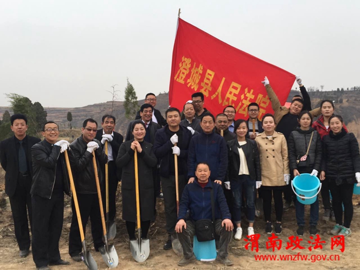 渭南政法网(特约通讯员 杨忠)春风送暖,万物始绿。为大力弘扬植绿、护绿、爱绿的文明新风尚,进一步改善生态环境,在全国第39个植树节来临之际,3月10日上午,澄城县人民法院积极响应县委、县政府关于开展2017年全民义务植树活动的号召,组织50余名干警驱车30余公里到王庄镇梁甫河村参加义务植树活动,以实际行动为建设美丽乡村、生态澄城再添新绿。
