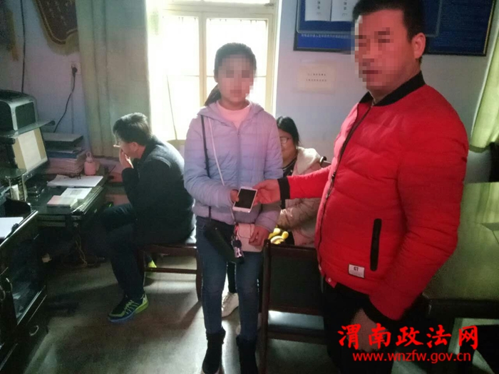 渭南政法网(特约通讯员 刘磊)3月13日13时50分,一名叫张琪的小姑娘和她同学到华阴市公安局北峰派出所报案,称自己通过手机定位到去年上华山时丢失的手机有人正在使用,并能查到使用者的电话号码。经民警电话联系使用者,告知其原尾后,使用者说手机是她花300元从地摊买的,表示可以将手机归还张琪。14时30分,经民警调节,张琪同意补偿归还手机者300元购机费,但自己身上没有那么多钱,回去用微信给他发红包。当着民警的面他俩人互加微信后,张琪领会了自己丢失半年的手机。