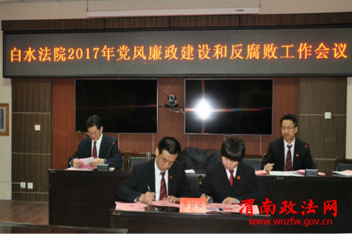 会上,该院纪检组长高田生回顾了2016年白水法院党风廉政建设和反腐败工作:一是狠抓干警的党纪党规教育,不断提高干警的纪律意识;二是制定并落实“两个责任”,层层签订党风廉政和反腐败工作责任书,为搞好党风廉政和反腐败工作提供制度保证;三是聚焦审判执行工作主业,切实履行起监督执纪问责的责任。同时全面安排部署了2017年党风廉政建设主要工作:全院法官干警统一思想,坚决维护中央权威;切实落实“两个责任”,确保从严治党落到实处;纪检监察部门将加强日常检查,持之以恒促进司法作风的转变;严明纪律,持续保持遏制腐败的高压态势。