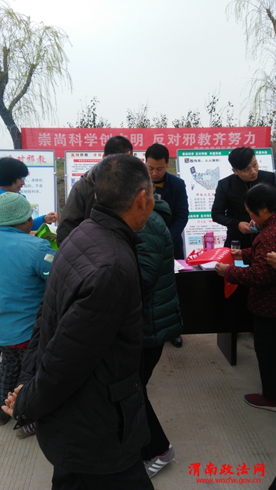 一年一度的宁山寺庙会于3月15日至17日持续举行,渭南市华州区利用宁山寺庙会广泛开展“崇尚科学树文明、反对邪教齐努力”的警示教育宣传活动。在宣传活动过程中,发放了《抵制邪教知识》宣传彩页6000余份,《反邪教宣传手册》1000余本,构建和谐家园手提袋500余个,防邪围裙500余个,现场解答群众疑问百余人次。通过此次宣传活动,深入群众普及反邪教基本知识,增强广大群众识邪、拒邪能力,努力营造华州区平安和谐社会氛围。