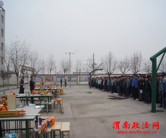 民警首先检查了学校的消防设施,对存在的问题提出了整改意见,并列出清单,要求学校及时整改。并与学校负责人一起对学生宿舍进行管制刀具检查,对宿舍的被褥、衣柜、床底等隐蔽角落进行细致检查,共收缴管制刀具5把,对存在私接电线,乱搭衣物等行为进行现场整改,要求学校严格落实出入登记制度,严防管制刀具和其他危险物品流入校园。随后,在学校操场,社区民警陈永宝以“预防违法犯罪,做爱国青年”为主题向广大师生上了一堂生动的法制教育课,从防火、防盗、防诈骗、防毒品、防腐朽思想侵蚀等五个方面进行细致讲解,教育广大学生要树立远大理想,坚决与国外反动思想作斗争,学会防护知识,做一个爱国有为青年。最后,民警对校园周边的商业门店、废品收购站、加油站、出租屋等场所进行了检查。