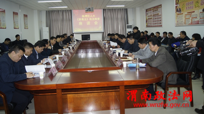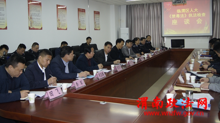 渭南政法网(临渭公安讯)为了积极面对当前临渭区禁毒工作所面临的形势,检查区政府及相关职能部门贯彻执行《禁毒法》的执行情况,督促政府采取强有力措施做好禁毒工作,3月21日上午,临渭区人大主任王进文、区人大副主任张纪平、宋兴平、张晓云与人大代表等22人组成的贯彻执行《禁毒法》检查组,在临渭区委常委、政法委书记李红伟,区政府副区长杨宇英、临渭分局局长沈军、副政委张君萍、禁毒大队大队长左建武陪同下,对临渭区落实《禁毒法》执行情况进行检查。