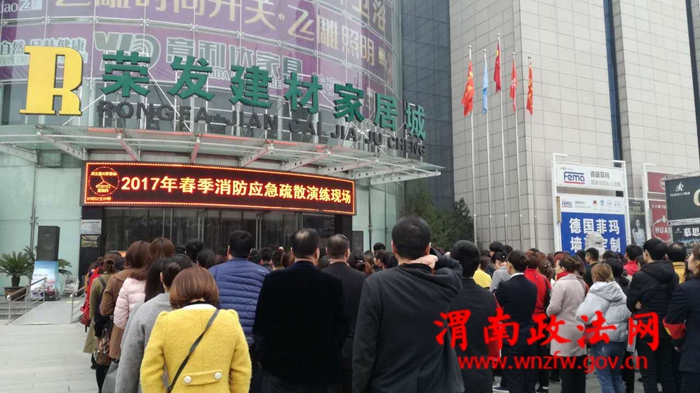 渭南政法网(临渭公安讯)为进一步提高社会单位的安全意识,提高火灾防控能力和突发事件的疏散逃生应急能力,正确使用灭火器材和各类消防设施,更好地掌握消防安全知识。3月23日8时,临渭分局消防大队深入辖区为荣发建材家居城业主及工作人员上了一堂生动的消防知识教育课及春季消防应急疏散演练,组织该建材家居城100余名业主进行了一次实战的消防安全疏散演练。